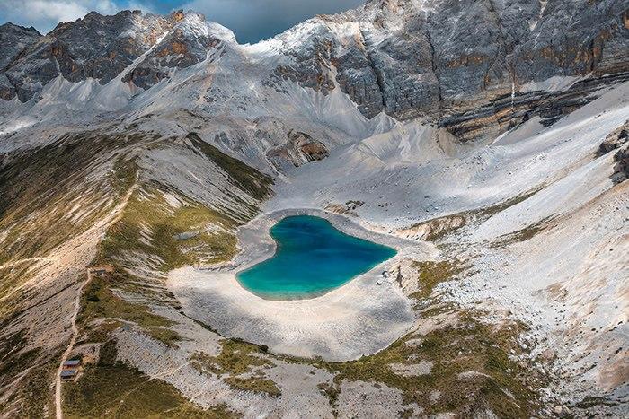 稻城亚丁现“心形”湖泊