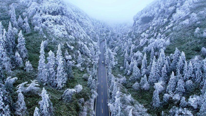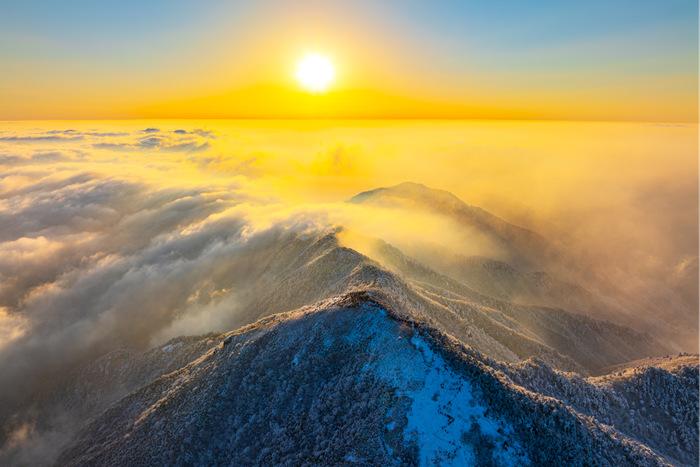 雪后太子尖流云飞瀑似仙境 云海与朝阳交相辉映