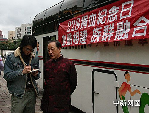 二月二十八日上午,台湾新党主席郁慕明等在台北“国父纪念馆”旁举行“血脉相连、族群融合”捐血活动。郁慕明对媒体称,每年二月都是“血荒”的时候,举行以“血脉相连、族群融合”为主题的捐血活动,是对“二二八”最好的纪念。中新社发 黄耀辉 摄