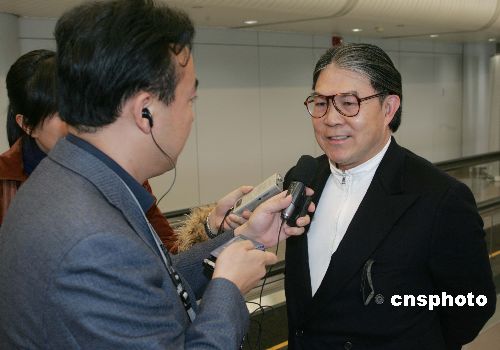 三月二日,出席全国政协十届五次会议的香港委员霍震霆在北京首都国际机场接受记者采访。中新社发 毛建军 摄
