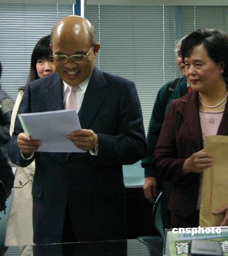 三月八日下午三时,台北,苏贞昌在民进党中央党部登记参加民进党内2008年“大选”人选初选。中新社发 黄耀辉 摄
