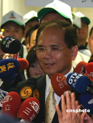 三月八日上午九时,游锡堃在民进党中央党部登记参加民进党内2008年“大选”人选初选时,接受媒体采访。中新社发 黄耀辉 摄