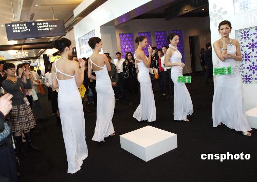 为迎合珠宝市场趋势﹐引全球注目的香港国际珠宝展特增设古董及古典首饰专区和翡翠专区展示各种怀旧及显赫人士的珍藏﹐翡翠首饰专区主力推介天然硬玉制成的优质翡翠首饰。3月9日﹐模特儿在香港国际珠宝展上﹐展演古典首饰及翡翠首饰。中新社发 王丽南 摄