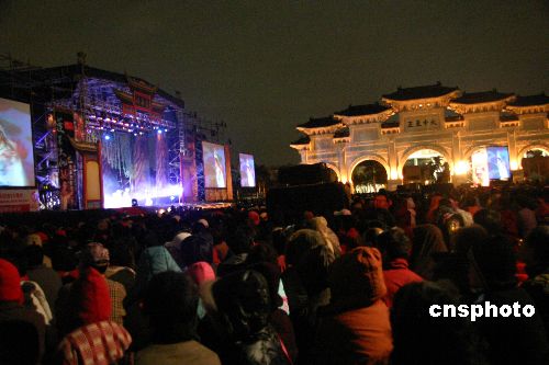 三月十七日在台北中正纪念堂广场举办的歌仔戏《蓬莱大仙》现场引来十万台湾人前来欣赏。该剧由台湾明华园戏剧团推出,当家小生孙翠凤主演。中新社发 吴庆才 摄