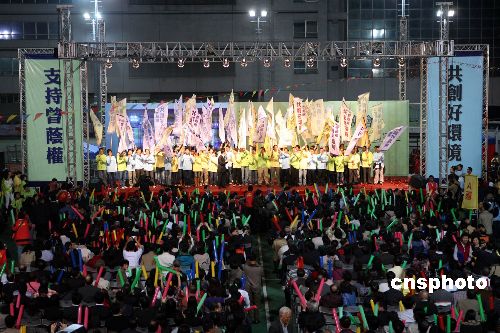3月23日晚,众多支持香港特首曾荫权连任的市民出席在湾仔修顿球场举办的晚会,为曾荫权加油打气。中新社发 洪少葵 摄