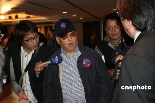 | 三月二十八日,现年八十岁的当年曾驾机飞经北京上空执行秘密侦察任务的原台湾“黑猫中队”飞行员(左二),出席在台北举行的《台湾天空的秘密》首播发布会。台湾中天新闻台电视频道将从三月三十日起,连续三天播放由香港凤凰卫视摄制的纪录片《台湾天空的秘密》。该片反映上世纪五十至七十年代,蒋氏父子与美国军情局合作,由美国提供侦察机,台湾派遣空军飞行员到大陆进行秘密侦察任务,以此换取美对台的军事援助和经济援助。当时担任低空特种侦测任务的称为“黑蝙蝠中队”,执行高空侦察任务的称为“黑猫中队”。中新社发 耿军 摄