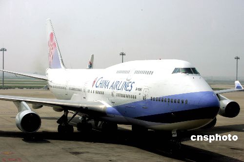 三月三十日下午一时三十分,海峡两岸首班清明包机——自桃园机场飞来的台湾“中华航空”CI七九五七次航班顺利降落上海浦东机场。从而拉开了二○○七年两岸清明包机的序幕。此次两岸共有十一家航空公司总计执飞四十二个往返航班。这是两岸五十七年以来的首次清明节包机。中新社发 汤彦俊 摄
