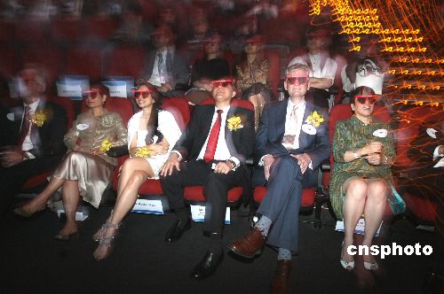 3月30日,落户香港机场的4D超立体巨幕影馆开幕,香港旅游发展局主席周梁淑怡、影星莫文蔚等嘉宾带上特制眼镜观看立体电影。据介绍,该馆拥有全亚洲最大的4D银幕,现场可感受到7种与剧情同步的感官刺激,包括:雪飘、风吹、水溅、烟、雾、光和气味等,观众可体验身临其境的感觉。中新社发 王丽南 摄
