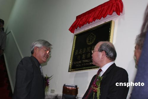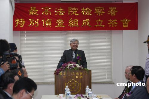 | 台湾“最高法院检察署特别侦查组”于四月二日在台北市中正区馆前路五十四号正式揭牌成立。该组专门侦办涉及台湾“总统”、“副总统”、五院院长、部会首长或上将阶级军职人员的贪渎案。此外,台湾重要选举中的严重舞弊事件或妨害选举的案件,也是特侦组所要侦办的。台湾“检察总长”还可以指定特侦组侦办特殊重大贪渎、经济犯罪、危害社会秩序的案件。中新社发 耿军 摄