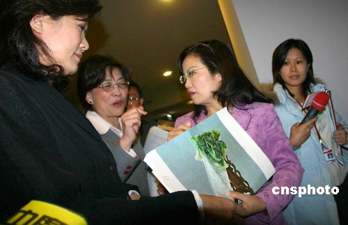 四月二日,李庆安、郭素春等国民党籍“立委”到台北故宫了解镇院之宝“翠玉白菜”和“满文原档”的受损原委。近日,台北故宫“翠玉白菜”上的一只小虫断了一根须以及“满文原档”里少了一页“女尸图”受到全岛关注。中新社发 吴庆才 摄