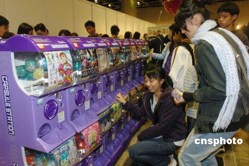4月6日,“香港玩具·扭蛋Show”一连三天在香港会展举行,生产商推出限量版、复活节版、会场版等吸引大批扭蛋迷爱好者到场,会场上扭蛋迷扭个不停。中新社发 邓庆乐 摄