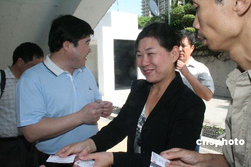 四月八日,率领一支八人小组专程来马解决中国劳工落难大马事件的天津市劳动和社会保障局副局长于茂东乘坐大客车前往吉兰丹州话望生县事发地点。中新社发 苏祥新 摄