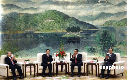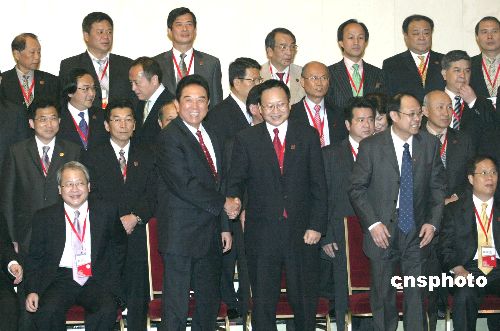 四月十五日,国务院台湾事务办公室主任陈云林在北京人民大会堂会见了刚刚当选的全国台湾同胞投资企业联谊会第一届常务理、监事会成员。陈云林希望大家不负广大大陆台商的重托,遵守台企联章程,秉持台企联宗旨,切实服务台商,维护台商合法权益,促进台资企业发展,为推动两岸经济交流与合作及两岸关系和平发展贡献智慧与力量。当日,全国台湾同胞投资企业联谊会在北京召开第一届第一次会员代表大会。中新社发 杜洋 摄