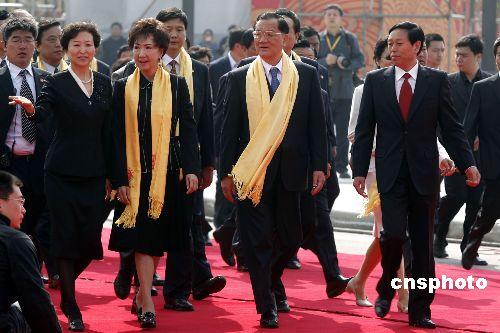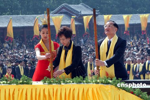 四月十九日,中国国民党荣誉主席连战及夫人参加在河南新郑举行的“丁亥年黄帝故里拜祖大典”。中新社发 慎重 摄