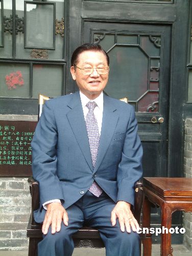 4月30日下午,中国国民党副主席江丙坤参观山西平遥古城。始建于中国西周时期的平遥古城,位于中国北部山西省内的太行与吕梁一对襟山之间,堪称传统文化宝库,一九九七年被联合国教科文组织列入世界文化遗产名录。图为江丙坤在平遥照相留念。中新社发 张墨 摄