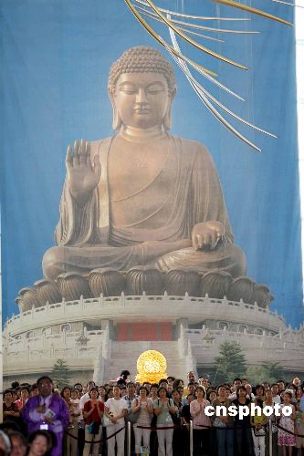 5月24日,香港佛教联合会在会展中心举行盛大的庆祝佛诞暨香港回归十周年吉祥大会,号召百万佛教信众同庆佛诞及香港回归十周年。近四千市民出席庆典活动。中新社发 洪少葵 摄