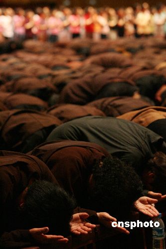 五月二十六日晚,香港佛教界举行忏摩法会,庆祝佛诞及香港回归祖国十周年。中新社发 武仲林 摄