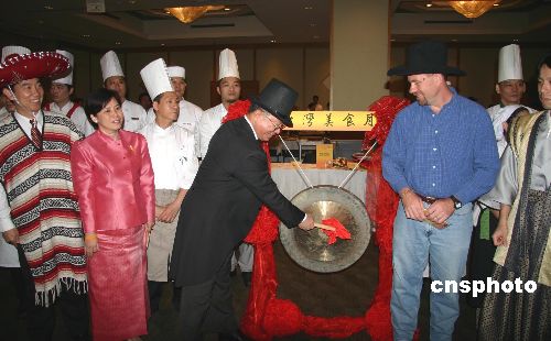 台湾美食月将于六月在宝岛登场,主办方台湾“外贸协会”五月三十日在台北举行起跑记者会,“贸协”秘书长赵永全为美食月开锣。中新社发 曾嘉 摄