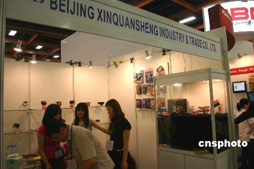 六月五日,台北国际电脑展开幕。作为国际知名的台北国际电脑展,大陆厂商却鲜有参展。图中是为数不多的一家来自北京的企业,该企业主要生产电脑主机风扇。中新社发 曾嘉 摄