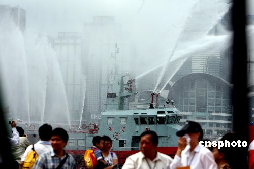 香港纪律部队六月九日文化中心露天广场举行庆祝香港特区成立十周年汇展﹐展示各部队过去十年的成果﹐内容包括装备展览、拯救示范和现场表演等。中新社发 王丽南 摄