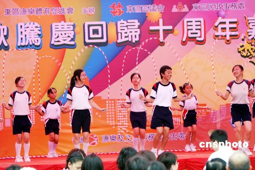 六月十七日,万众欢腾庆回归十周年嘉年华在香港维多利亚公园举行,活动吸引了众多香港市民的参与。中新社发 武仲林 摄