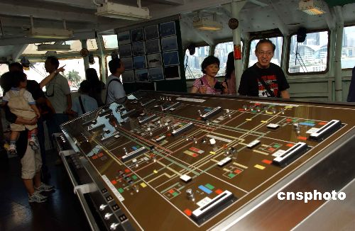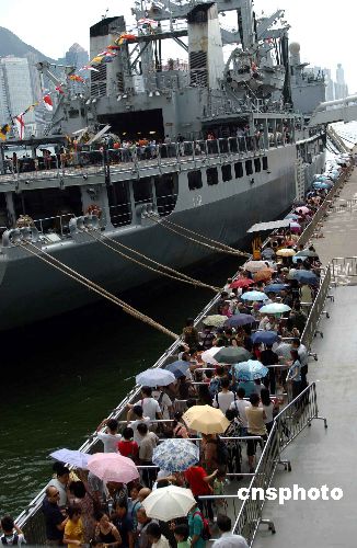 法国“瓦尔”号补给指挥舰,19日在香港开放给公众参观,吸引大批市民在烈日下排队。“瓦尔”号近日抵港,进行为期1周的休整和补给。中新社发 谭达明 摄