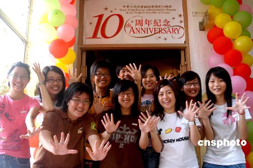 随着香港回归纪念日的临近,在泉州华侨大学就读的香港学生别出心裁地用照片、实物模型和印有香港标志的饰物等精心制作了许多微缩版块,装扮了一间“香港回归十周年纪念馆”,向老师和同学们展示香港回归十周年以来的巨大变化。中新社发 傅丹丹 摄