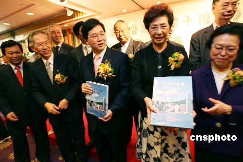 6月22日,香港基本法推广督导委员会辖下的工商专业界工作小组举行《基本法与香港回归十周年》新书发布会。中新社发 洪少葵 摄
