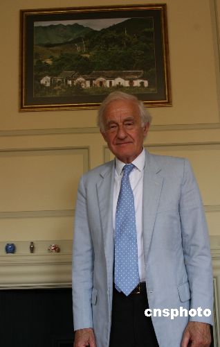 香港回归十周年之际,香港前总督卫奕信接受中新社记者专访。现任剑桥大学彼得豪斯学院院长的卫奕信,其办公室的墙上挂的是香港乡村的照片。中新社发 李鹏 摄
