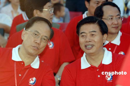 七月一日晚,香港特别行政区行政长官曾荫权、广东省省长黄华华等出席在深圳世界之窗举行的“紫荆花开十年香、深港同心耀中华”大型联欢晚会。中新社发 陈文 摄