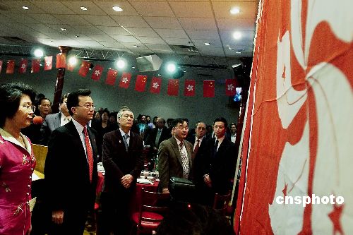 当地时间七月一日晚,美国旧金山华侨华人近千人聚会庆祝香港回归十周年。中新社发 陈钢 摄