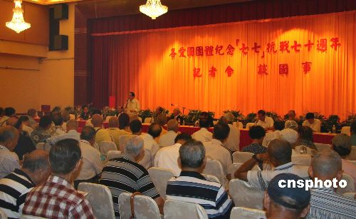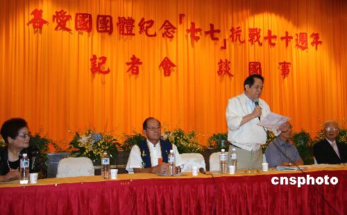 七月二日,中国统一联盟等十七个台湾团体在台北举行记者会,宣布将联合举办纪念“七七”抗日战争七十周年活动,并开展拥护“一国两制”的演讲。中新社发 耿军 摄