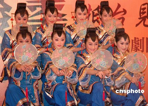 七月四日,山西省华晋舞剧团在台北媒体见面会上表演扇舞。由财团法人台北爱乐文教基金会主办,山西省华晋舞剧团抵台,将于七月七日至八日在台北戏剧院献演反映晋商成功艰辛历程为主题的经典舞台剧《一把酸枣》。中新社发 王辛莉 摄