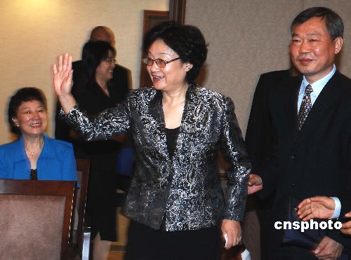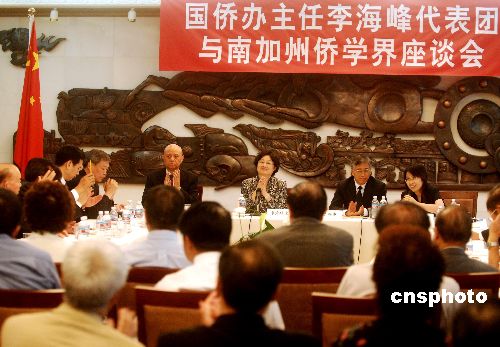 美国当地时间七月四日,国务院侨务办公室主任李海峰带领一行飞抵洛杉矶后,赶赴总领馆参加与华侨华人座谈会。中新社发 贾国荣 摄