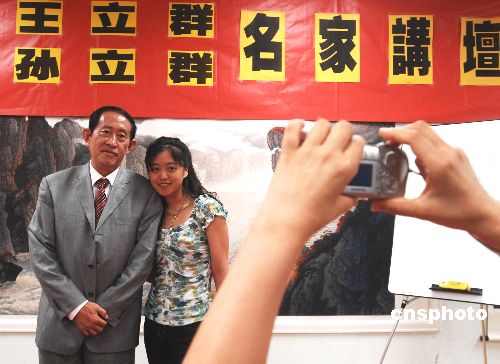 享誉中国的电视节目《百家讲坛》的主讲者越洋飞抵洛杉矶,七月二十二日继续美国真人现场版为华人华侨接着开讲《史记》中汉武帝风流功过是非启迪后人,并忙于为“粉丝”签名售书。中新社发 贾国荣 摄