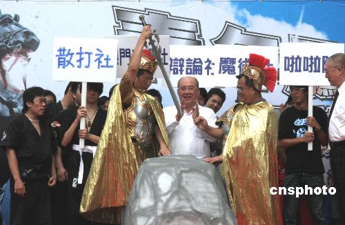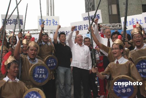 8月1日,中国国民党在台北举行青年团总团长交接典礼。在党主席吴伯雄见证下,新任总团长、现为台湾世新大学口语传播学系研究所硕士班学生黄执中,从原任林益世手中接过为国民党扩展吸收年轻成员的工作。中新社发 黄少华 摄