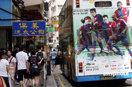 八月五日,一辆有西甲豪门巴塞罗那巨型广告的公交巴士驶过香港街头。继拜仁慕尼黑、利物浦等欧洲顶级足球俱乐部之后,八月十日,巴塞罗那队将访问香港,势必将再次掀起一次足球的热潮。中新社发 武仲林 摄