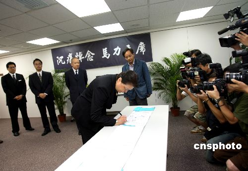 8月14日,香港民建联总部、十八个支部及马力议员办事处,摆放吊唁册并开放给公众签名。立法会主席范徐丽泰到总部出席吊唁签名。全国人大代表、香港民建联主席、香港立法会议员马力8月8日在广州逝世,终年五十五岁。中新社发 洪少葵 摄