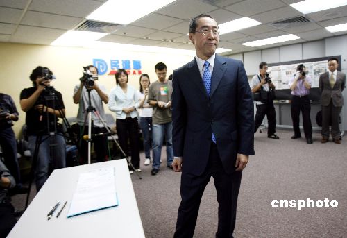 8月14日下午,香港署理行政长官唐英年前往民建联总部签署吊唁册,悼念上星期在广州病逝的民建联主席马力。中新社发 洪少葵 摄