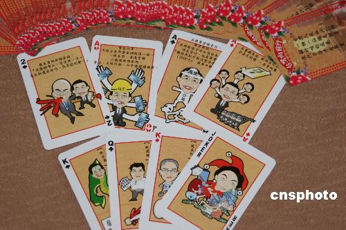 八月二十二日,中国国民党文传会在台北公布“非常扑克”,内容汇集民进党执政以来的多项弊案。“非常扑克”首批制作二十万副,将主动赠送台湾各地民众。中新社发 董会峰 摄