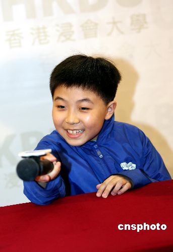 9岁香港神童沈诗钧八月二十三日被香港浸会大学数学系录取,成为香港有史以来最年幼的大学生。当日学校召开记者会公布这一消息。浸会大学署理校长陆大章教授介绍,沈诗钧学业成绩卓越、面试表现成熟,学校经初步评估,认为他适合修读大学本科课程,学校将安排沈诗钧同学修读理学院特别设计的五年全日制课程。沈诗钧随父陪哥哥去英国读书,在英国只用了1年就读完3门高考科目,之后再用6个月读完8门会考科目。他已于今年1月应考高补(AS Level)数学和进阶数学,两科都是A级。中新社发 王丽南 摄