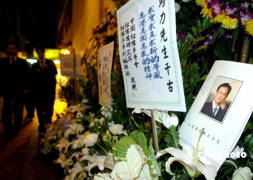 八月二十三日,民建联为已故主席马力在香港殡仪馆设灵,多位特区官员及市民到灵堂致祭。中新社发 邓庆乐 摄