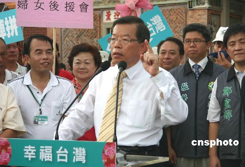 民进党二〇〇八台湾地区领导人选举候选人谢长廷二十五日出席在新竹县义民庙举行的造势活动,向支持者谈起“和解共生”理念。中新社发 曾嘉 摄