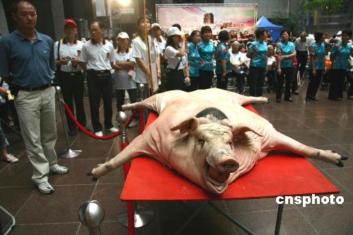 图为主祭台前客家乡亲为“义民爷爷”摆放的各式牲礼。