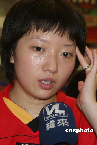 八月二十六日下午,台北乒乓球公开赛鸣金,新加坡国手李佳薇击败队友冯天薇,夺得女单冠军。新加坡选手还获得女双亚军及二十一岁以下女单冠军。图为李佳薇夺冠后接受记者采访。中新社发 董会峰 摄