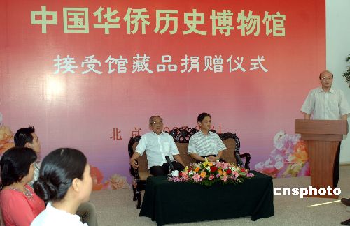 8月31日下午,新加坡收藏家黄兴先生,向在北京筹建中的中国华侨历史博物馆捐赠了近现代有关华侨华人的历史文物及紫砂制品近九百件,其中有明代至文革时期的紫砂壶收藏品285件。连同去年10月捐赠的约四百余件华侨华人历史文物,黄兴已向中国华侨历史博物馆捐赠文物1000余件。黄兴先生祖籍广东大埔,上世纪七十年代初期开始从事收藏活动。中新社发 邹宪 摄
