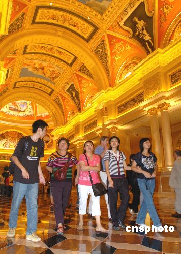 九月二日,澳门市民在刚开业的威尼斯人度假村酒店观光、游览。开业以来,已有数十万人次前来捧场。威尼斯人度假村酒店游人天天如潮,日日爆棚。中新社发 史利 摄