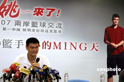 正在台湾交流访问的NBA第一中锋、大陆著名篮球运动员姚明八日转往新竹进行慈善公益活动。中新社发 崔煜芳 摄