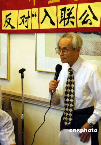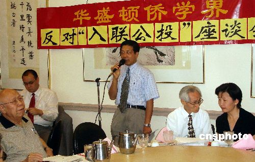 华盛顿时间九月八日晚,美国大华盛顿地区近二十个侨学界社团五十余位知名人士集会,发表声明谴责和反对台独分子“入联公投”。中新社发 邱江波 摄