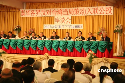 九月十一日,泰华各界在泰国中华总商会隆重举行“反对台湾当局策动入联公投”座谈会,泰华社团首长、工商企业界、学术界以及新闻媒体逾五百人出席了座谈会。中新社发 顾时宏 摄